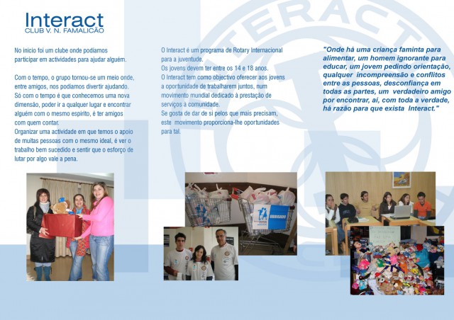 O Interact Club é um grupo de adolescentes de 12 a 18 anos, patrocinados por um Rotary Club, em que o principal objetivo é tentar ajudar a sociedade de uma forma simples, com campanhas, doações, visitas a creches e hospitais, entre outras coisas para melhorar do meio-ambiente à saúde da população carente.